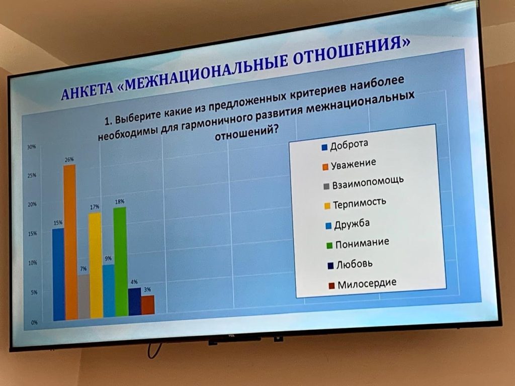 Состоялся диалог между представителями конфессий, молодежью и представителями общественных организаций, участники которого обсудили важные темы межнациональных и межконфессиональных отношений, семейных ценностей, дружбы людей разных вероисповеданий, провели анализ социологических исследований.