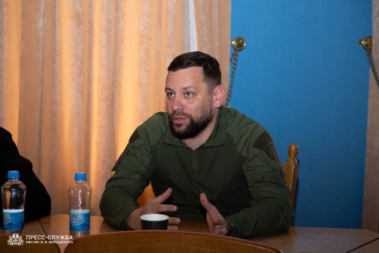 В Крымском федеральном университете состоялся открытый диалог с военным корреспондентом, руководителем ГТРК «Вести Крым» Михаилом Андроником. Тема встречи – миссия ...